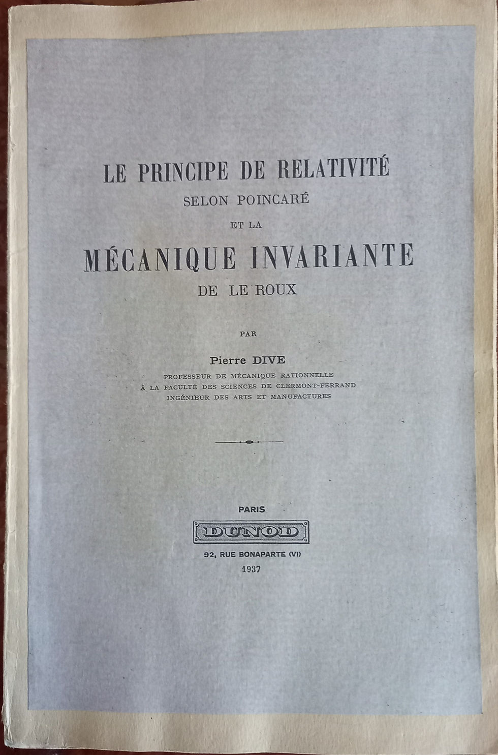 Relativité selon Poincaré et Mécanique invariante de LeRoux, P. Dive, 1937